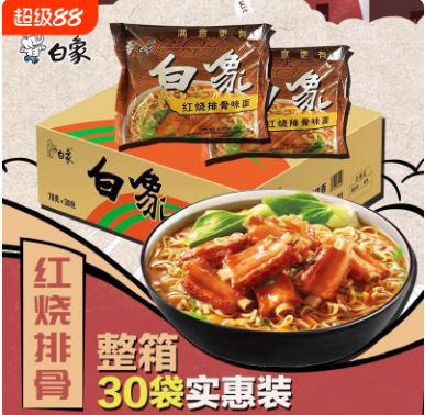 白象红烧排骨味78g袋装单整箱方便面干吃干脆面煮泡面宿舍零食