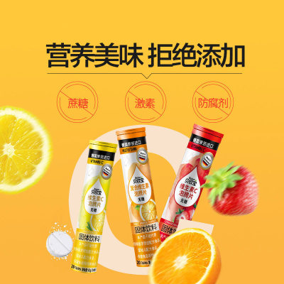 贝欧宝无糖泡腾片复合维生素C维VC果汁固体果汁饮料82g