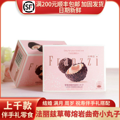 法丽兹草莓味熔岩曲奇小丸子结婚生日伴手礼粉色方盒36g/4袋装