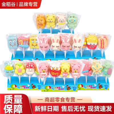 金稻谷16克卡通造型棉花糖串串棒棒糖儿童零食糖果学校超市批发