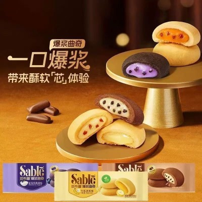 莎布蕾爆浆曲奇饼干牛乳香蕉巧克力味网红休闲零食小吃下午茶点心