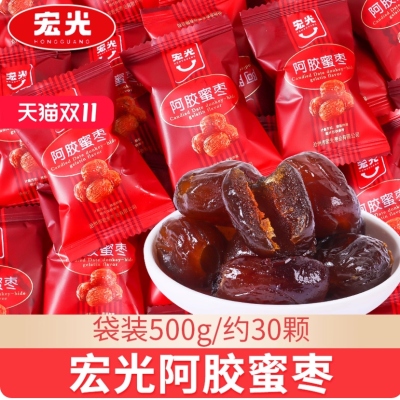 宏光无核阿胶枣500g蜜枣独立小包装金丝蜜饯红枣子办公室休闲零食