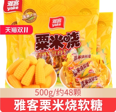 雅客粟米烧玉米软糖500g结婚喜糖怀旧休闲零食过年货糖果新年零食