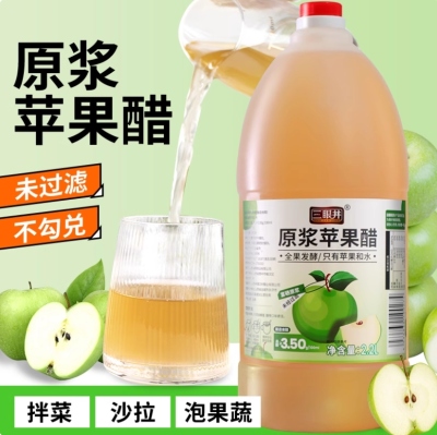 三眼井原浆苹果醋2200ml大桶实惠装无添加发酵酿造食醋