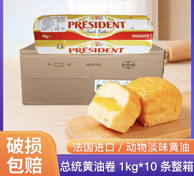 法国进口总统淡味黄油卷1kg发酵动物性乳酸黄油面包商用烘焙原料