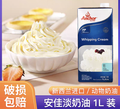 安佳淡奶油1L新西兰动物性装鲜奶油裱花蛋糕蛋挞奶盖家用烘焙原料
