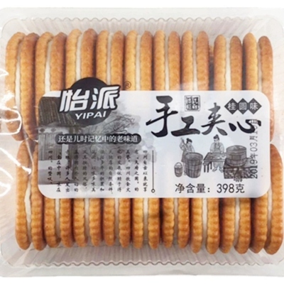 怡派手工夹心饼干398g/袋 桂圆味夹心饼干零食 整箱=12袋