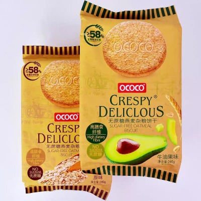 OCOCO燕麦杂粮饼干原味牛油果味240g独立包装休闲酥脆点心零食