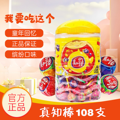 真知棒什锦水果味棒棒糖约108支桶装情人节礼物糖果972g超市批发