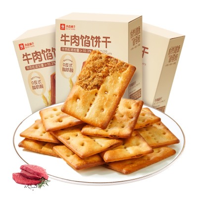 良品铺子牛肉夹馅饼干120g咸香薄脆休闲零食小吃