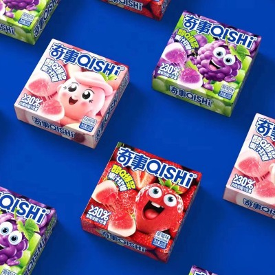 奇事酸Q爆浆果汁软糖110克水果口味草莓葡萄白桃糖果零食批发爆汁