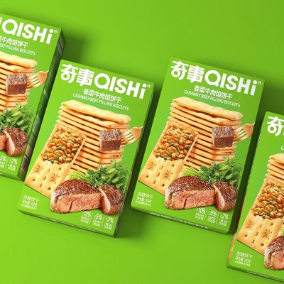 奇事香菜牛肉馅饼干100克盒装下午茶办公室休闲零食健身代餐批发