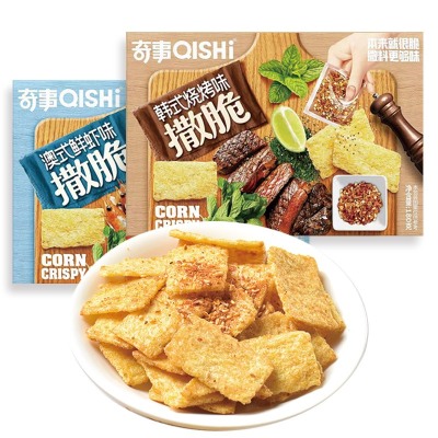 奇事撒脆锅巴180克盒装海鲜烧烤味膨化食品办公室网红休闲零食