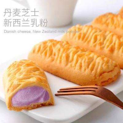 法丽兹香芋厚乳牛乳蛋羹果粒草莓曲奇派100g*24盒下午茶点心