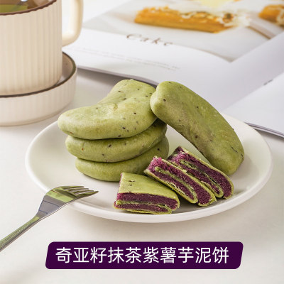 奇亚籽抹茶紫薯芋泥饼干0添加蔗糖健康零食粗粮代餐糕点休闲小吃