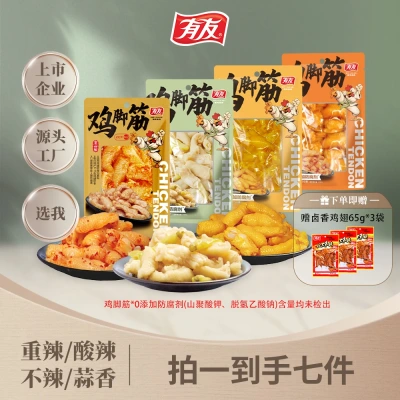 【第五届年货节】有友 山椒金蒜蒜香盐焗泰式酸辣味鸡脚筋无骨鸡爪50g/袋