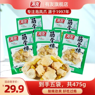 【第五届年货节】有友筋骨棒95g*5袋泡椒凤爪鸡爪鸡拐山椒鸡脚爪鸡肉零食小吃