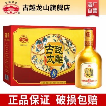 古越龙山 绍兴花雕黄酒整箱糯米酒 古越太雕八年陈酿 500ml*4瓶8年陈