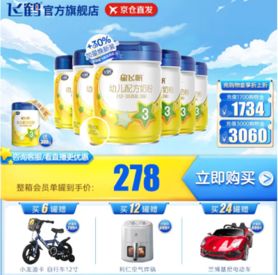 飞鹤 星飞帆3段1-3岁幼儿配方奶粉听装