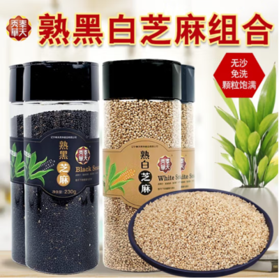 秀华装炒熟黑芝麻组合粒罐装即食调料家用商用厨房熟芝麻白农家罐装干吃熟的免洗五谷杂粮 熟白芝麻200g*1瓶+熟黑芝麻200g*1瓶