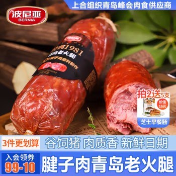 波尼亚 青岛老火腿385g 火腿肉 大腱子肉火腿 山东香肠熏烤特产午餐肉即食切片纯腱子肉食品即食熟食 腱子肉青岛老火腿*3支(价更优) 385g(猪腱子肉制作)