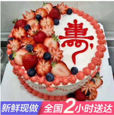 曼恒网红水果老人生日蛋糕同城配送全国当日送达新鲜奶油蛋糕祝寿寿桃蛋糕送长辈爷爷奶奶外公外婆爸爸妈妈寿山福海 8英寸