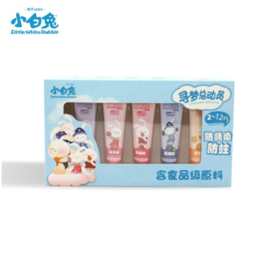 小白兔 国货儿童牙膏套装护齿含氟防蛀2-12岁婴儿宝宝换牙期 30g*5支套装