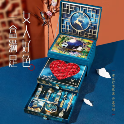 一鹿有你彩妆套装口红化妆品礼盒初学者全套美妆实用生日礼物女生七夕情人节礼物送女友女朋友老婆结婚纪念日 3层玫瑰花音乐亮灯彩妆礼盒