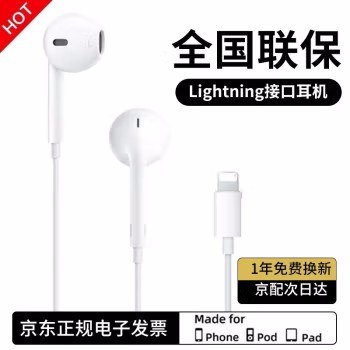 苹果耳机有线lightning扁口iPhone13/12/11/8P/XS/8/7 XS/13/12/11pro真芯片扁头接口