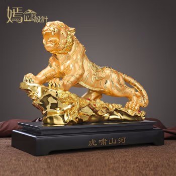 鑫大华威 虎啸山河老虎摆件十二生肖虎办公室桌家居店铺前台装饰工艺品公司开业礼品 虎啸山河(镀金)中号长约38宽约15高约29厘米