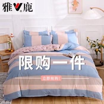 雅鹿家纺【低价冲量】全棉床上四件套纯棉简约ins北欧风男士被套床单被罩夏季学生宿舍三套件4 简爱 2.0m床单款四件套【适合200*230被子】