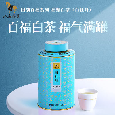 八马茶叶 2020新品福鼎白茶白牡丹龙珠百福圆罐紧压白茶茶叶80g