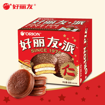 好丽友派 2枚装巧克力味涂饰蛋类芯饼蛋糕休闲零食 糕点点心68克