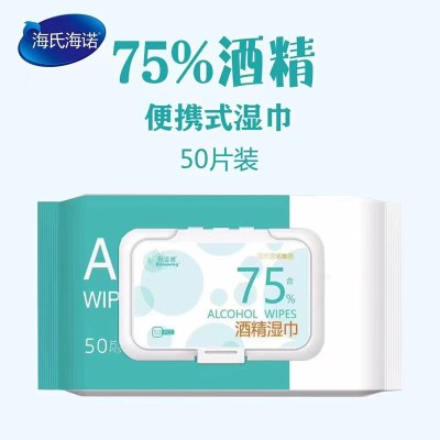 海氏海诺倍适威75%酒精湿巾杀菌消毒湿巾批发现货免洗湿纸巾50抽