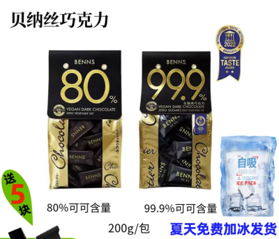 BENNS贝纳丝无糖进口黑巧克力99%纯可可脂零食健身80%袋装新品