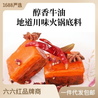六六红厂家直发单人麻辣牛油火锅料80克小方块家用烧菜料小火锅
