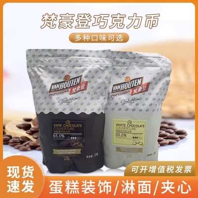 梵豪登黑巧克力币65%纯可可脂白巧克力币30.5%纽扣状手工烘焙原料