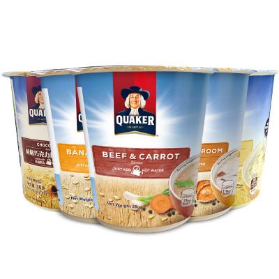 QUAKER桂格 马来西亚进口速食燕麦片5杯混合口味 杯粥即食麦片代餐谷物冲调健康营养早餐方便速食