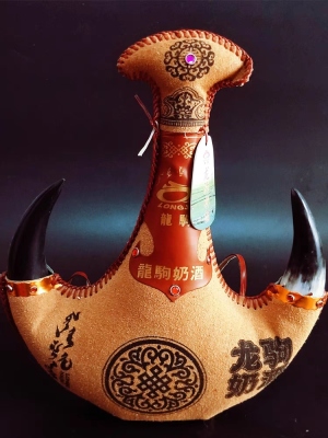 马奶酒内蒙古特产52度500ml手工皮囊酒真牛角龙驹人气礼品酒送礼