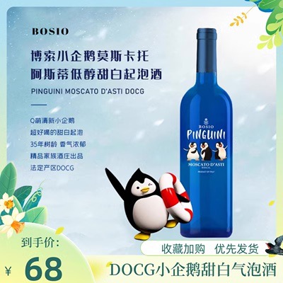 【大祥哥来了】DOCG莫斯卡托D‘ASTI小企鹅甜白起泡酒葡萄酒750ml