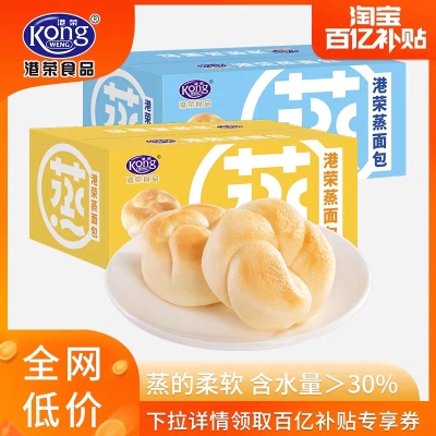 【百亿补贴】港荣淡奶蒸面包早餐整箱手撕小蛋糕吐司营养老人零食