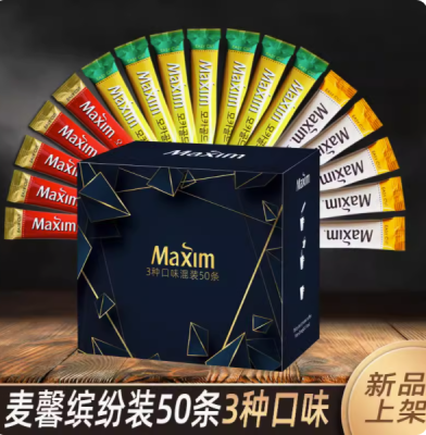 麦馨咖啡Maxim摩卡口味韩国白金麦馨原味咖啡粉缤纷装50条组合装