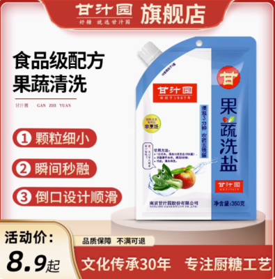 甘汁园果蔬洗盐家用水果蔬菜清洗清洁盐食品级去残留洗涤盐包邮