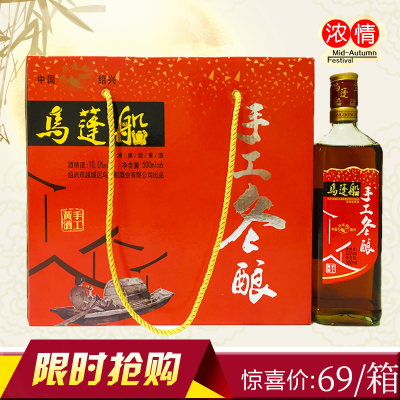 乌篷船 手工冬酿 浙江绍兴花雕 糯米黄酒 500ml×6瓶半干型整箱