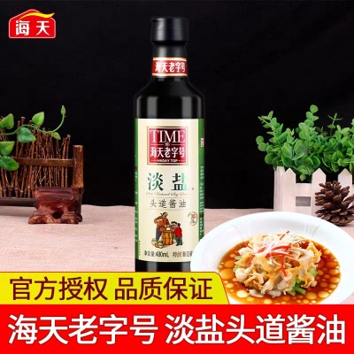 海天老字号淡盐头道酱油480ml小瓶 家用凉拌炒菜生抽特级酿造酱油