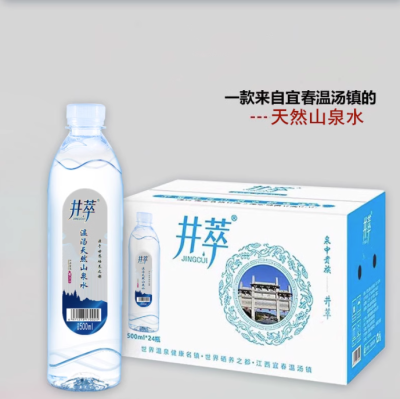 江西宜春明月山特产温汤镇井萃天然山泉水弱碱性500毫升/24瓶两箱