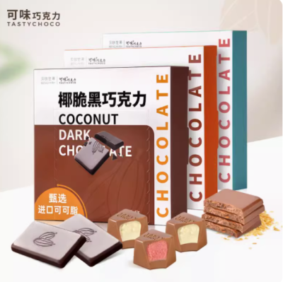 可味椰脆巧克力零蔗糖黑巧酸奶海盐夹心巧克力便携装零食活动礼物