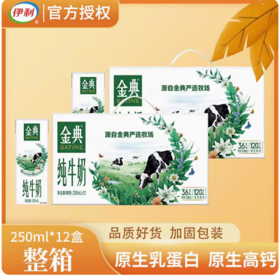 【2提】9月伊利金典纯牛奶礼盒装250ml*12盒0添加原生高钙纯牛奶