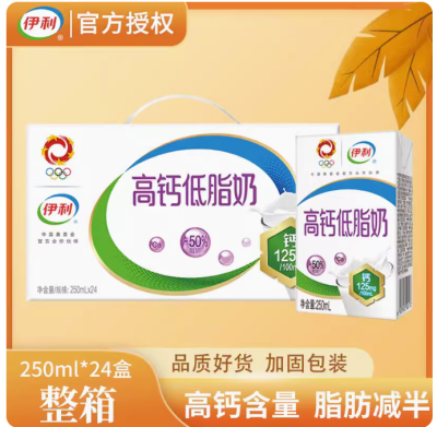 【9月新货】伊利高钙低脂牛奶整箱250ml*24盒伊利高钙奶低脂奶