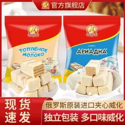 俄罗斯进口零食酸奶威化饼干巧克力糖果散装网红爆款食品旗舰店